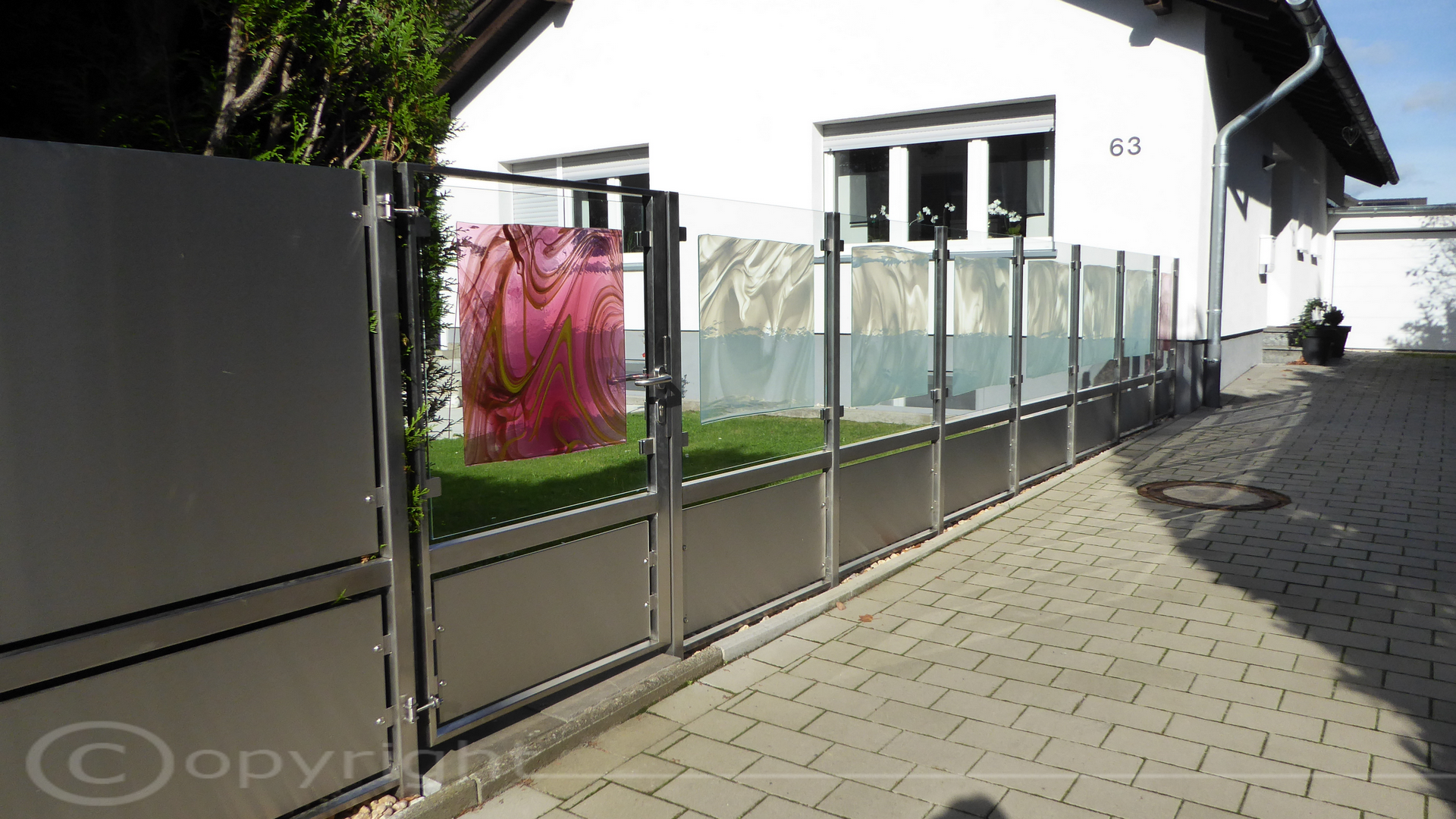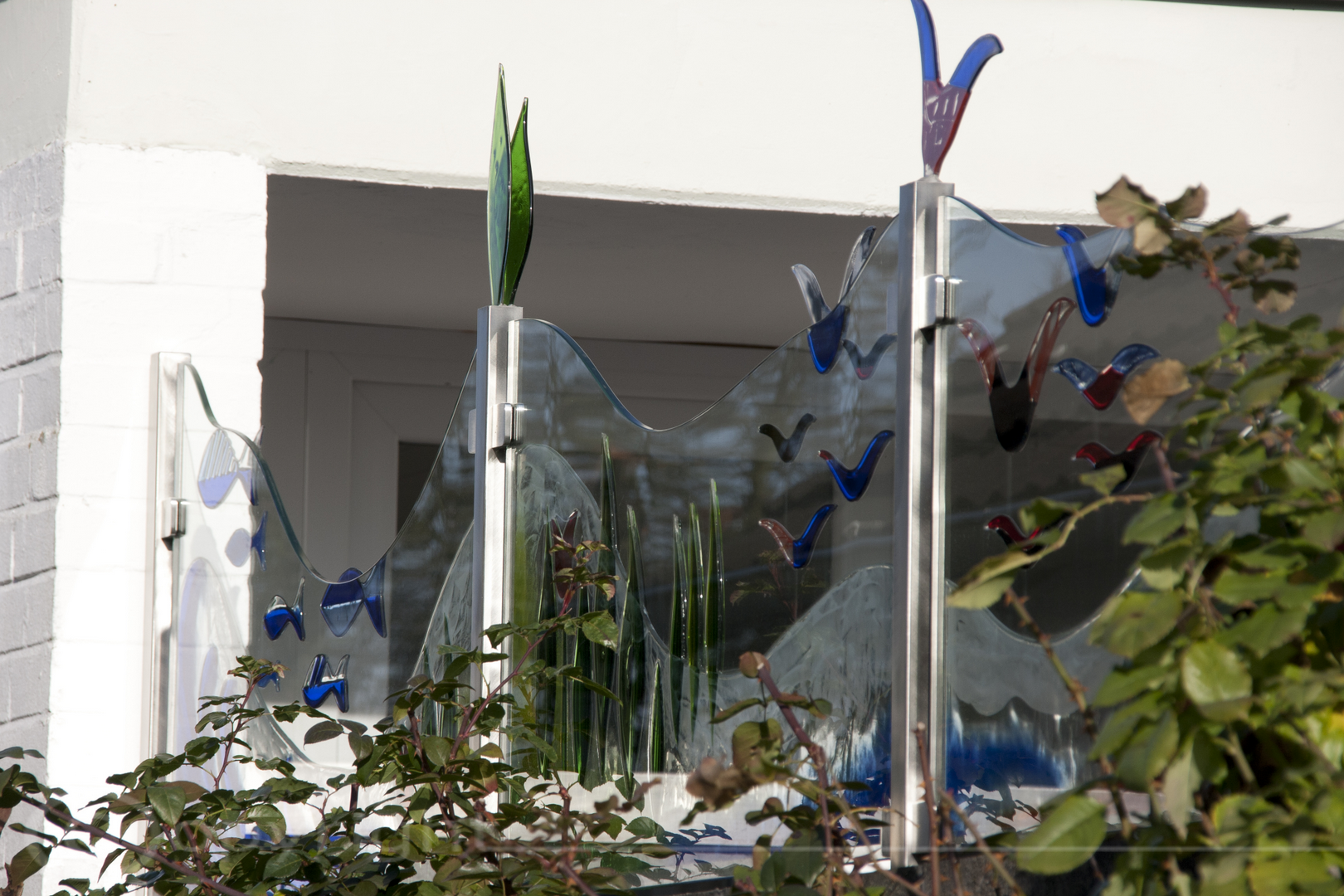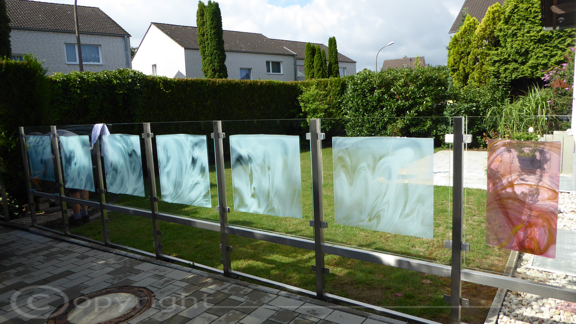 Die Kombination aus Sicherheitsglas (ESG), Edelstahl und gestaltbarem Glas – ob geschmolzenes Fusingglas oder mundgeblasenes Echtantikglas – ermöglicht eine individuelle Gartengestaltung.
