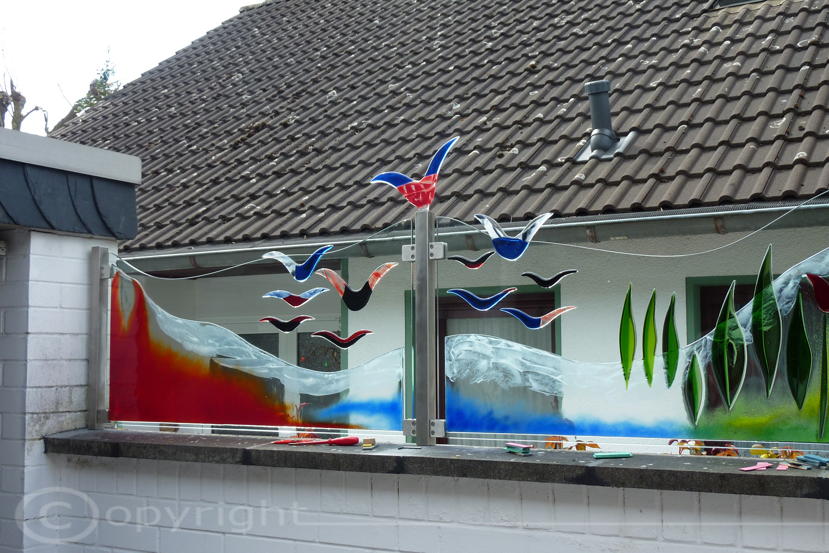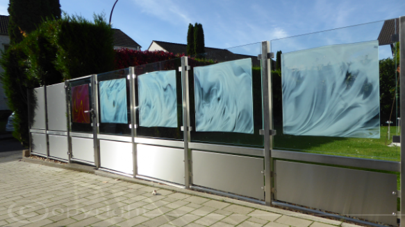 Gartenzäune, Windfänge und freistehende Gartenobjekte aus Glas in Kombination mit Edelstahl sind ebenso wetterfest wie die Silikonverklebung.