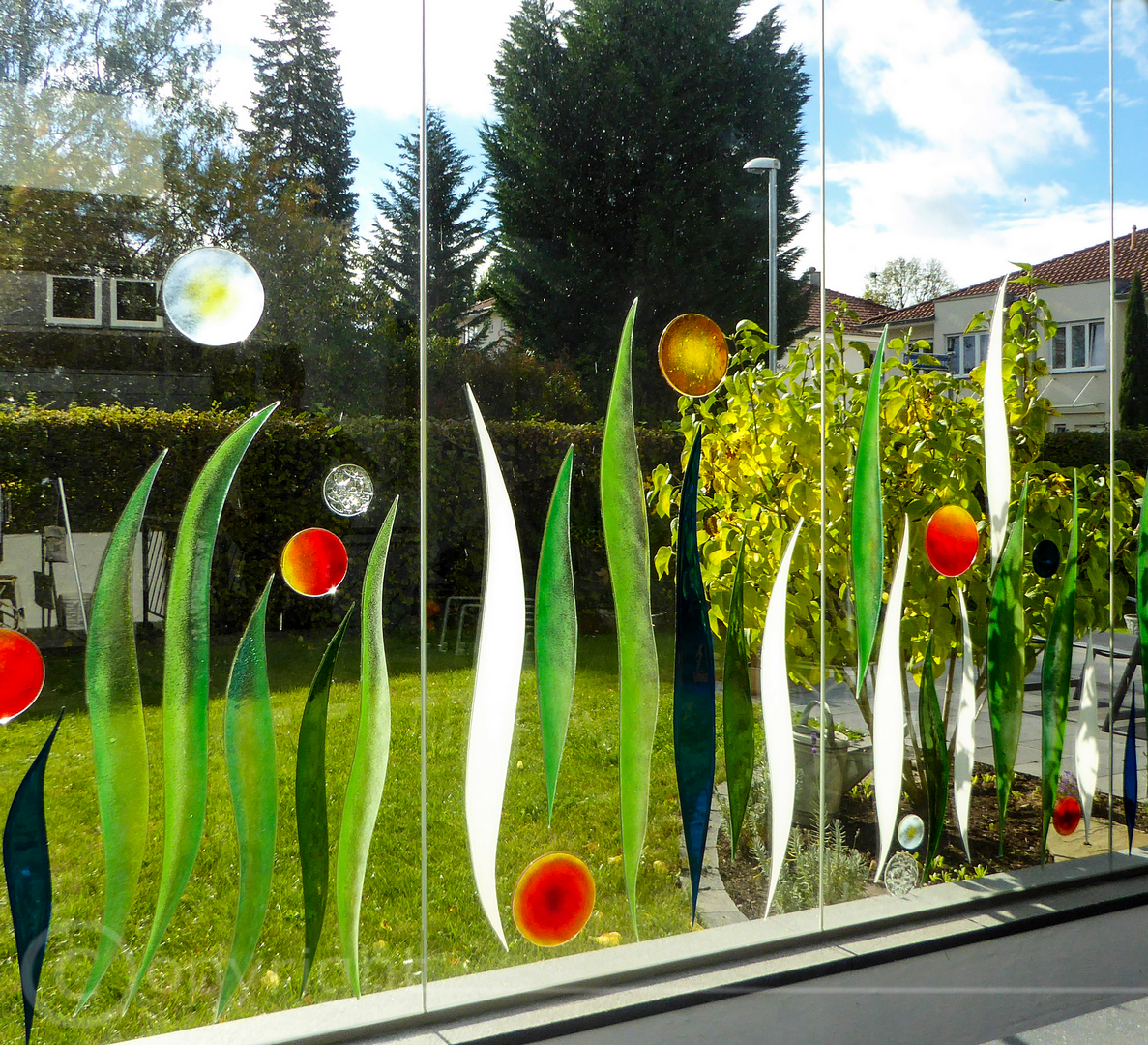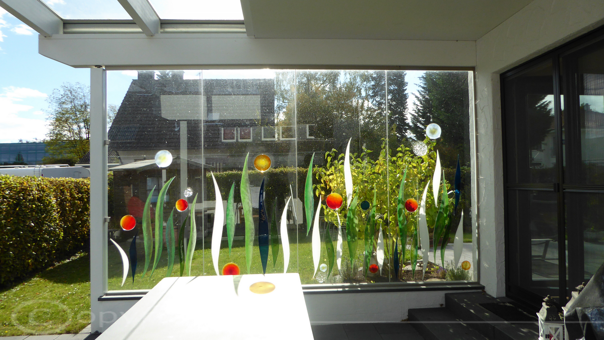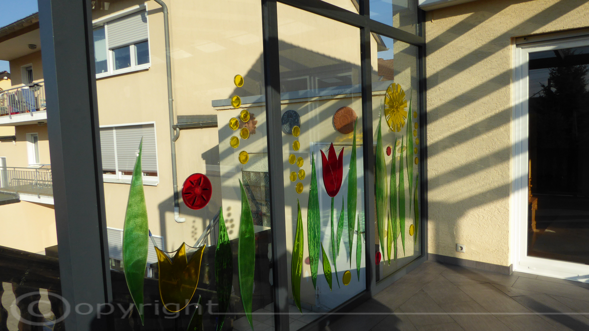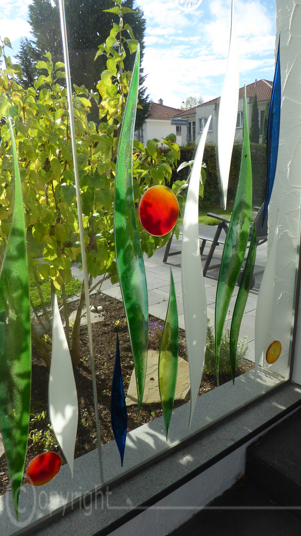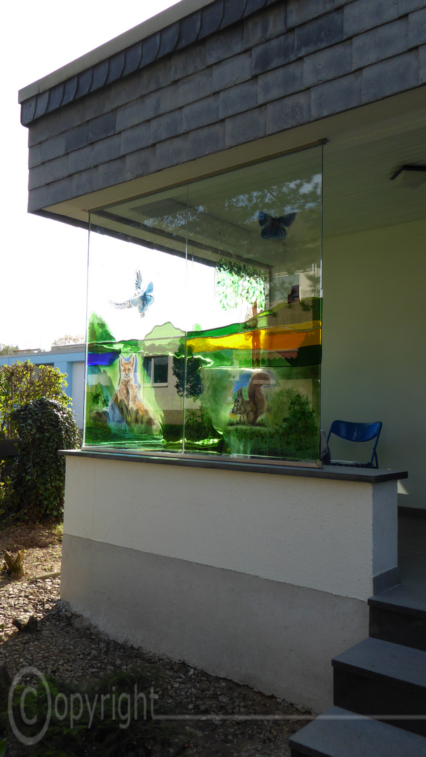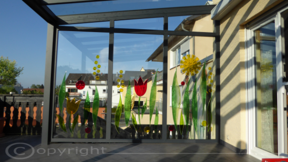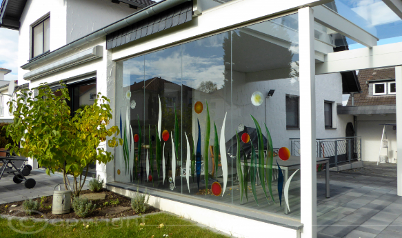 Hier sehen Sie Glasgestaltungen, die für den Außenbereich konzipiert wurden.