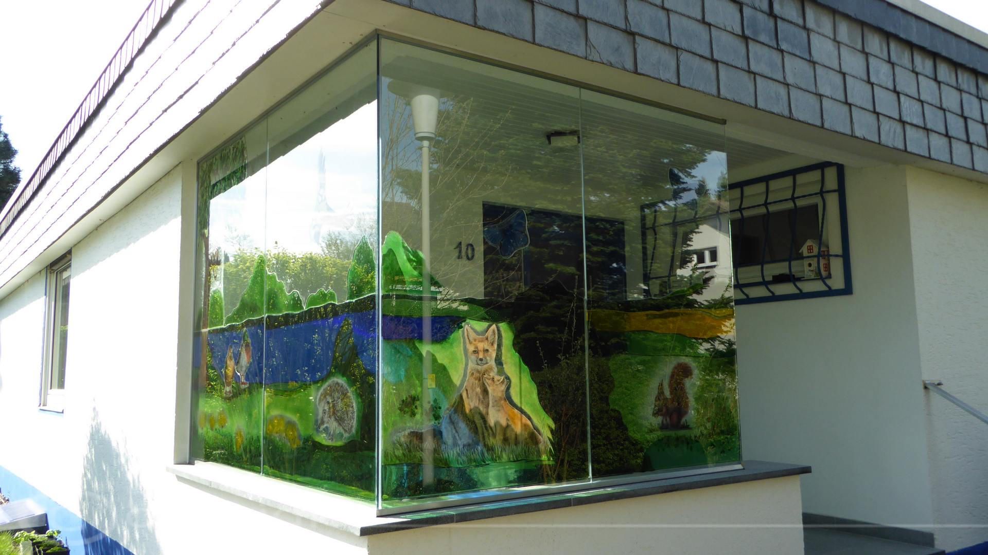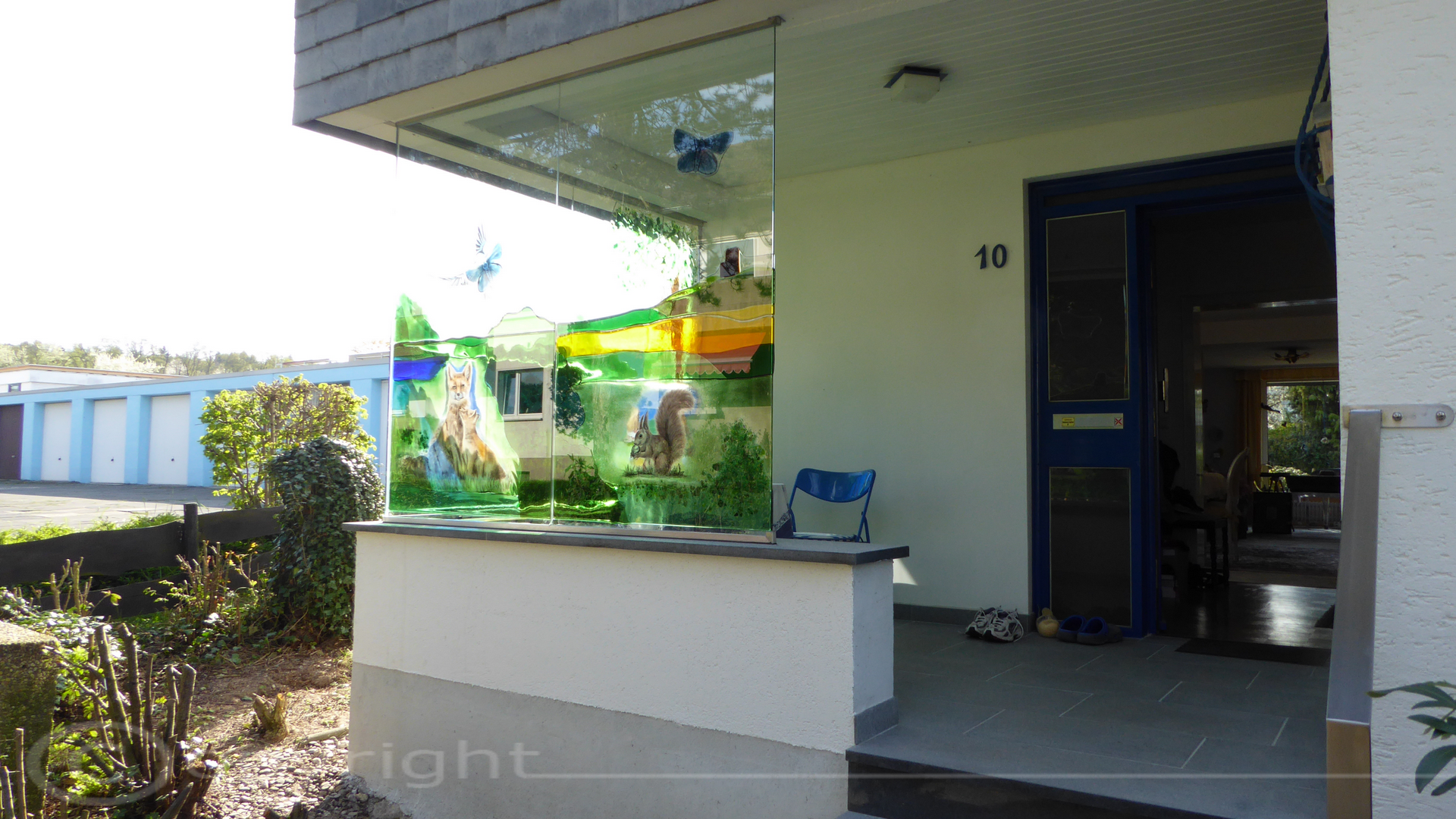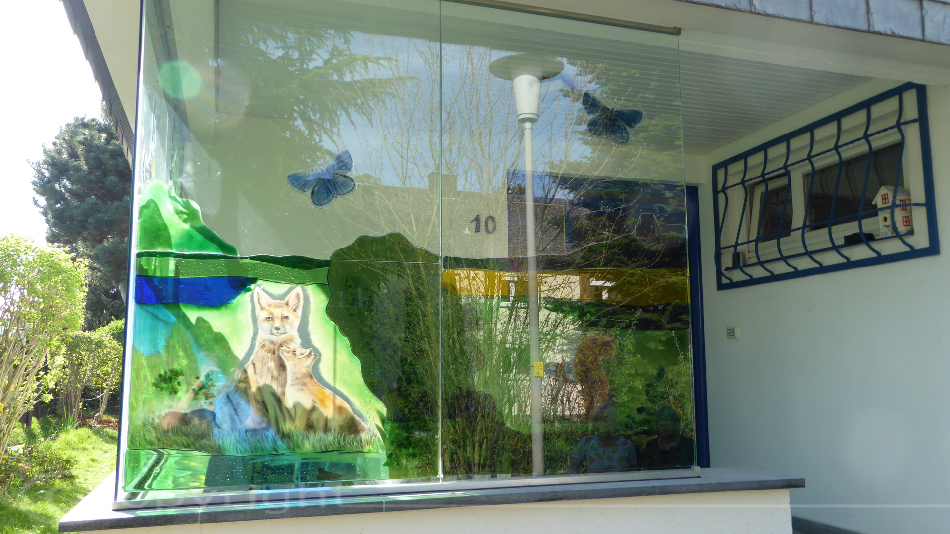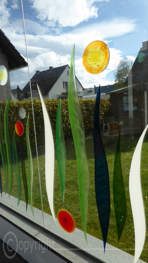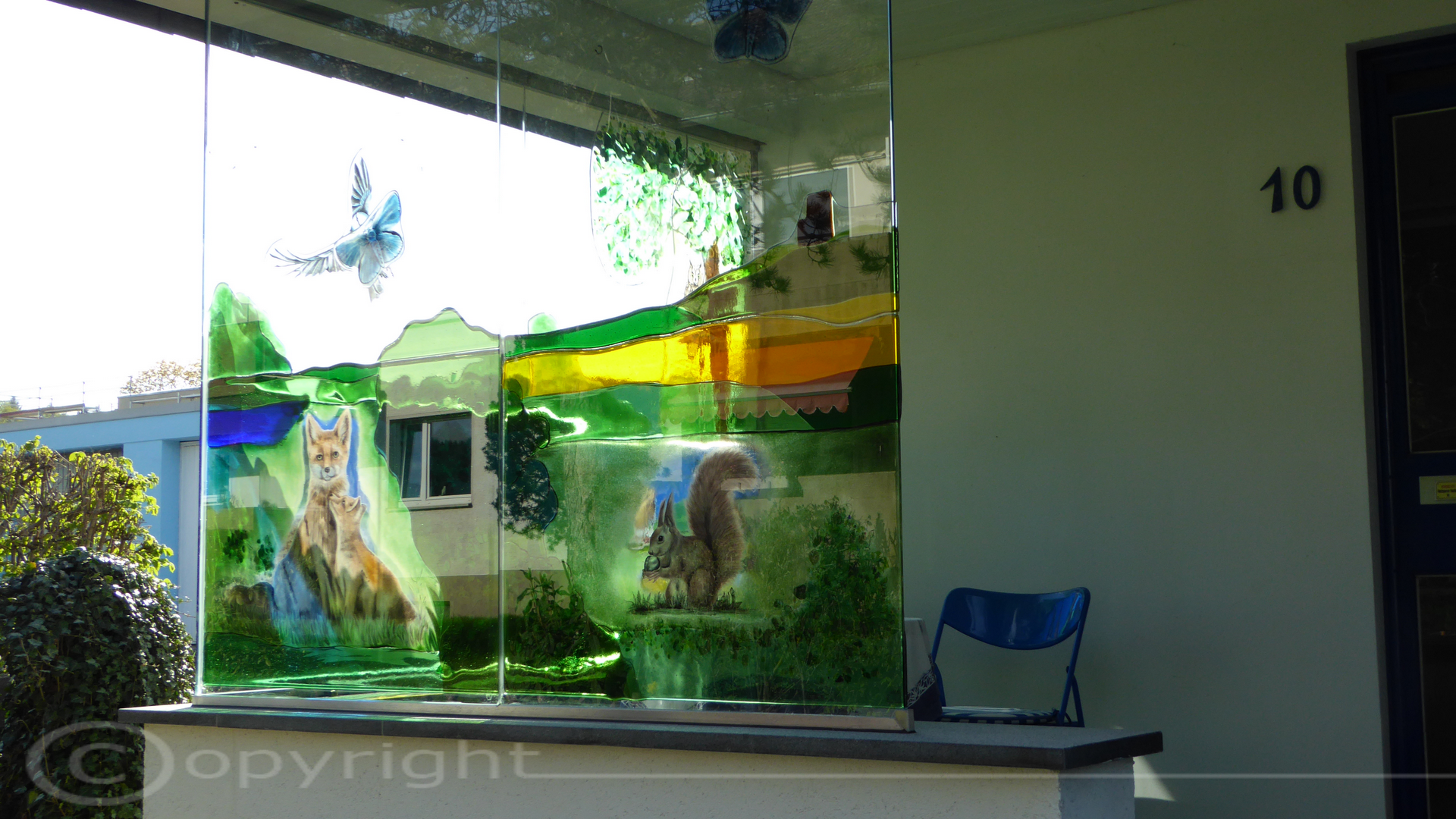 Hier sehen Sie Glasgestaltungen, die für den Außenbereich konzipiert wurden.