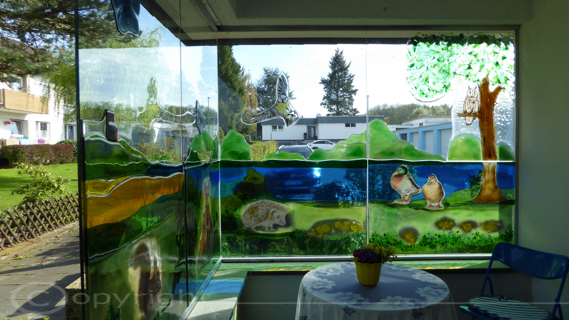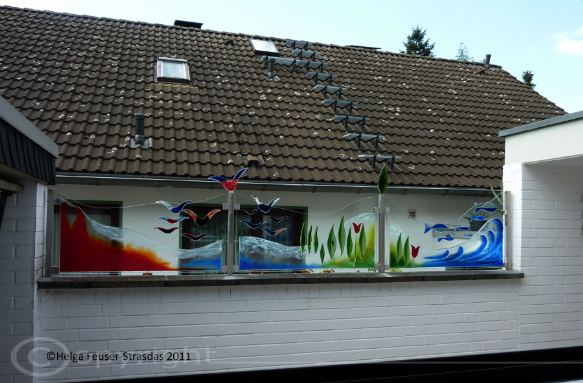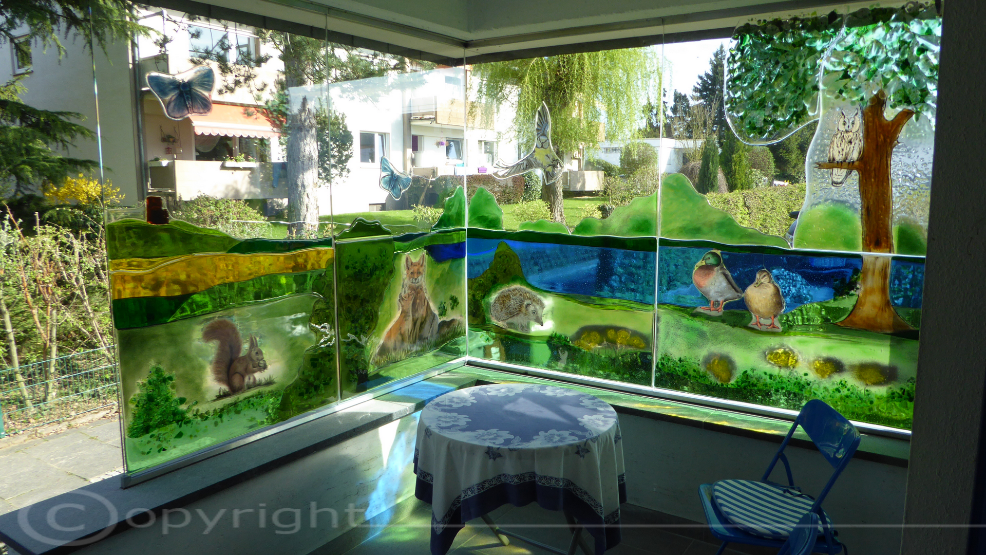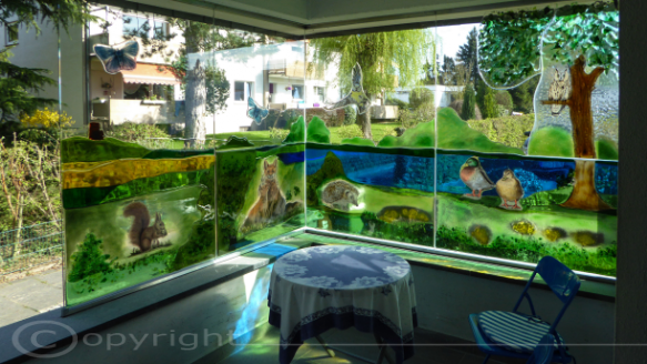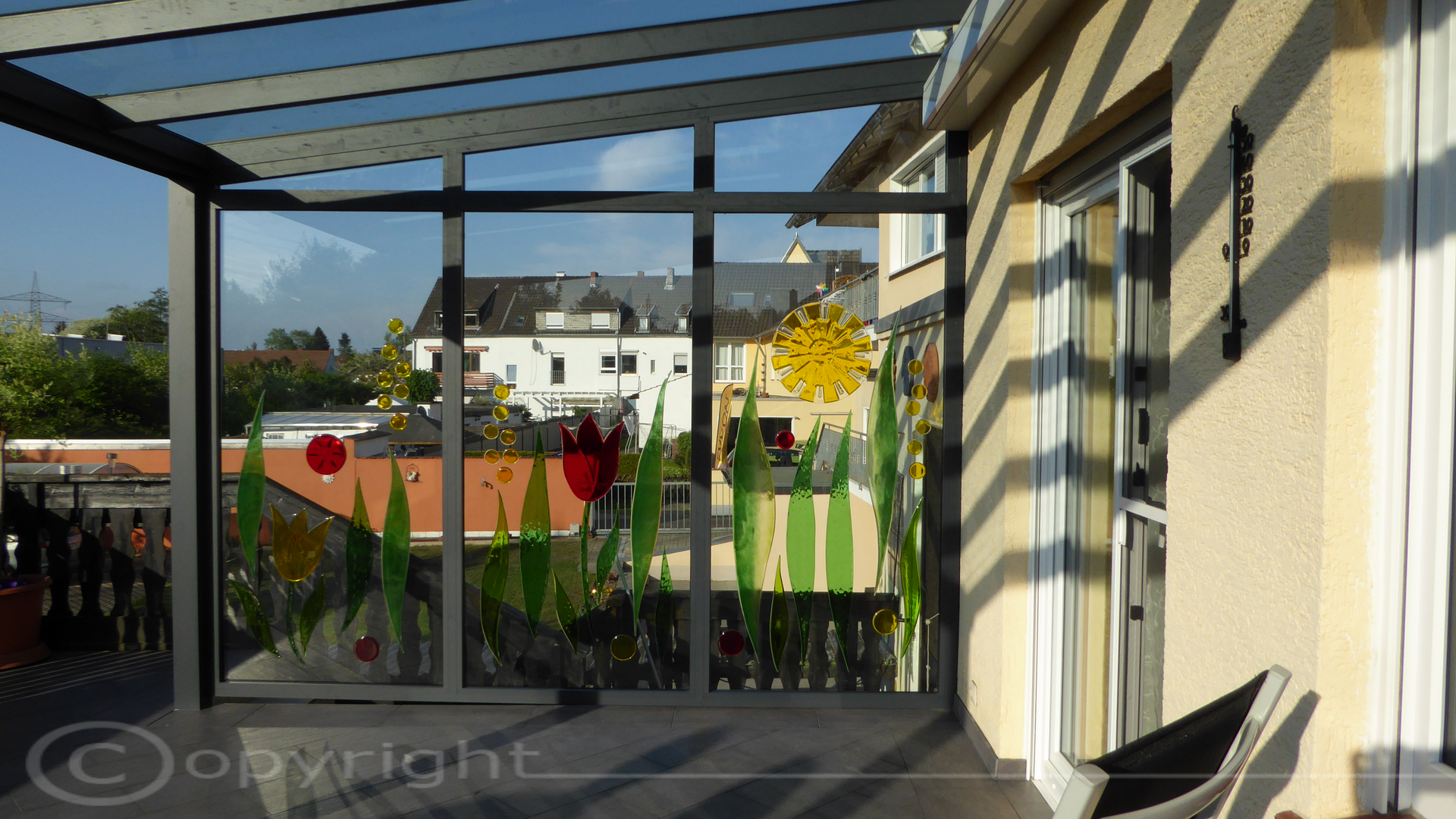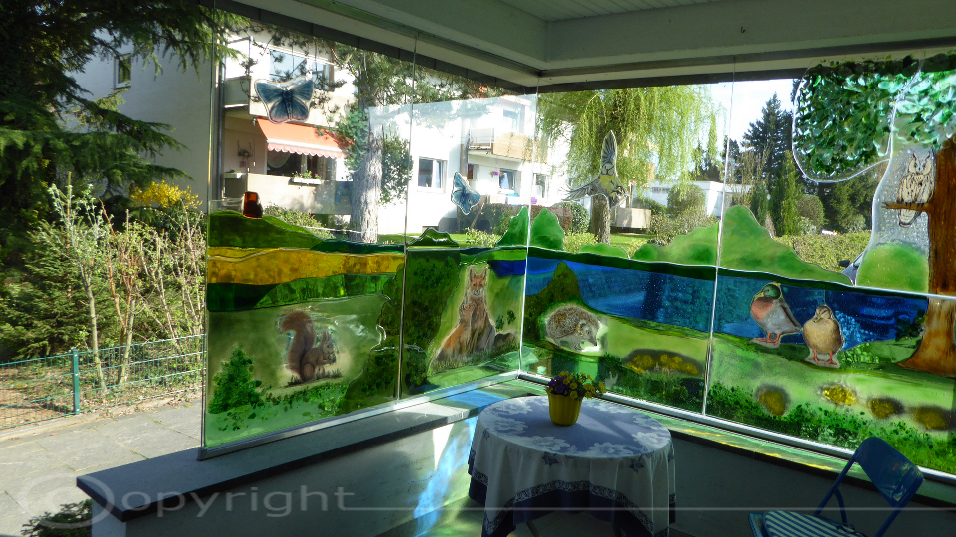Hier sehen Sie Glasgestaltungen, die für den Außenbereich konzipiert wurden.