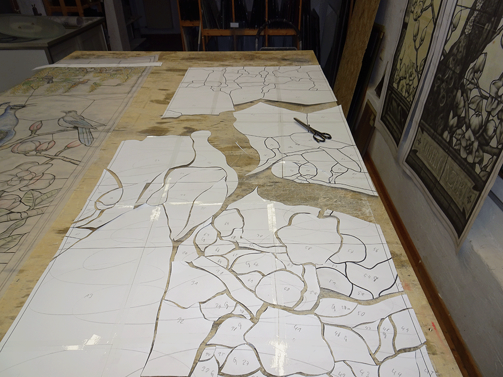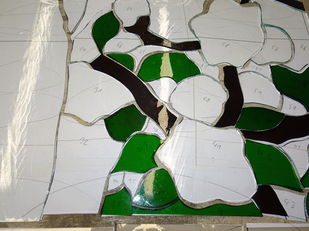 Die Herstellung der Glasmalereien erfolgte in den Jahren 2021 und 2022, gefolgt von der Montage.