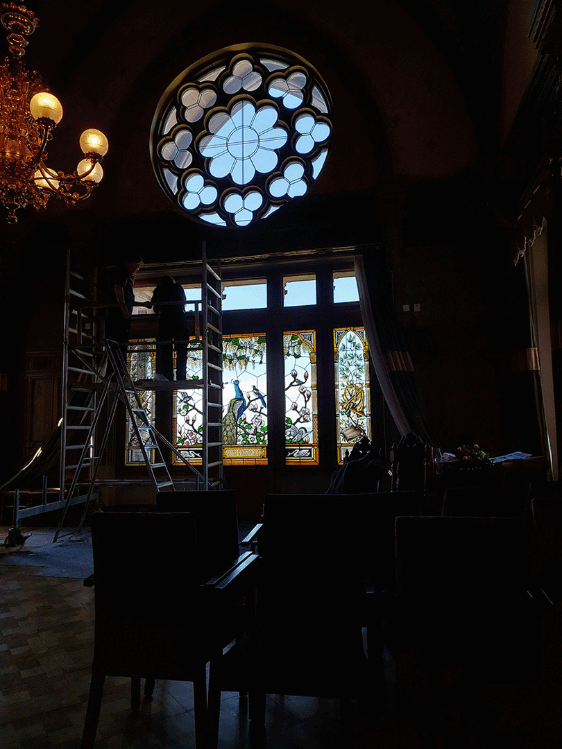 Rekonstruktion der Bleiverglasungen im Empfangssaal im Schloss Drachenburg in Königswinter