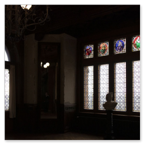 Im Anschluss an die Arbeiten im Empfangssaal hat die Schloss Drachenburg gGmbH Frau Helga Feuser-Strasdas mit der Rekonstruktion des Fensters im Musiksaals beauftragt.