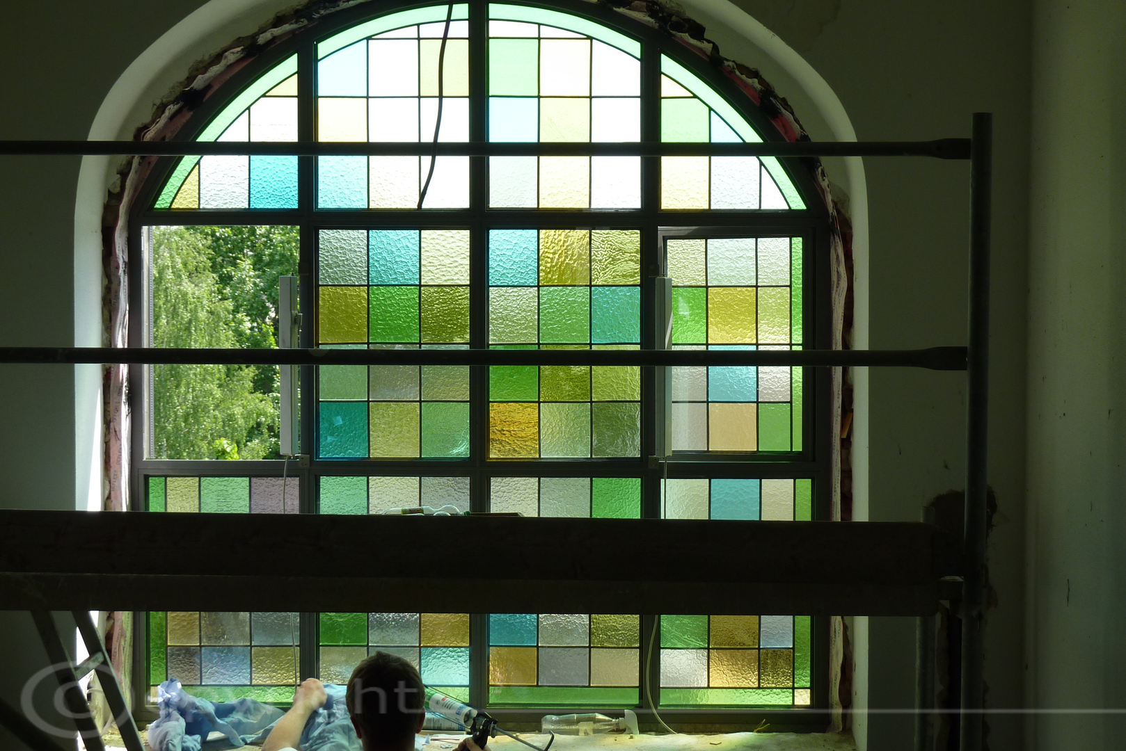 Die Produktion wurde im Herbst 2024 aufgenommen und im April erfolgte die Installation der fertigen Verglasung im Kneipzimmer.