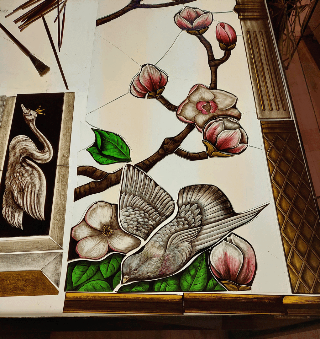 Rekonstruktion der Glasmalereien im Musikzimmer von Schloss Drachenburg in Königswinter